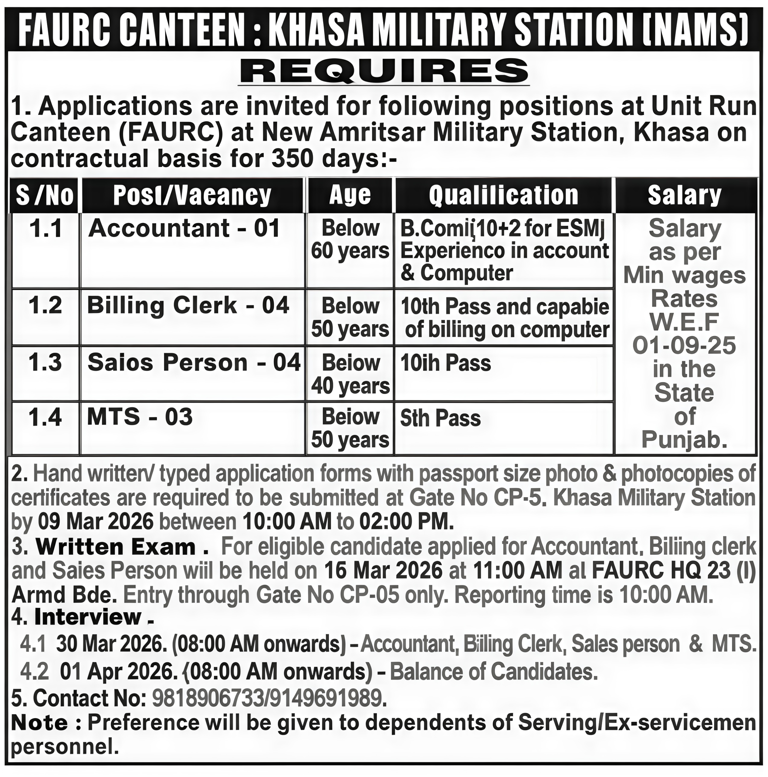 | Military canteen, Amritsar | 09/03/2026 | Click Here | Click Here |